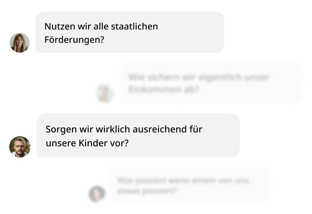 Wir sind überzeugt, dass die Familie das wichtigste Sicherheitsnetz ist. Staatliche Systeme können unterstützen, aber echte Stabilität entsteht durch private Vorsorge und klare Struktur innerhalb der Familie. Die Experten beraten euch dabei, eine nachhaltige finanzielle Grundlage aufzubauen, die langfristig Sicherheit schafft.